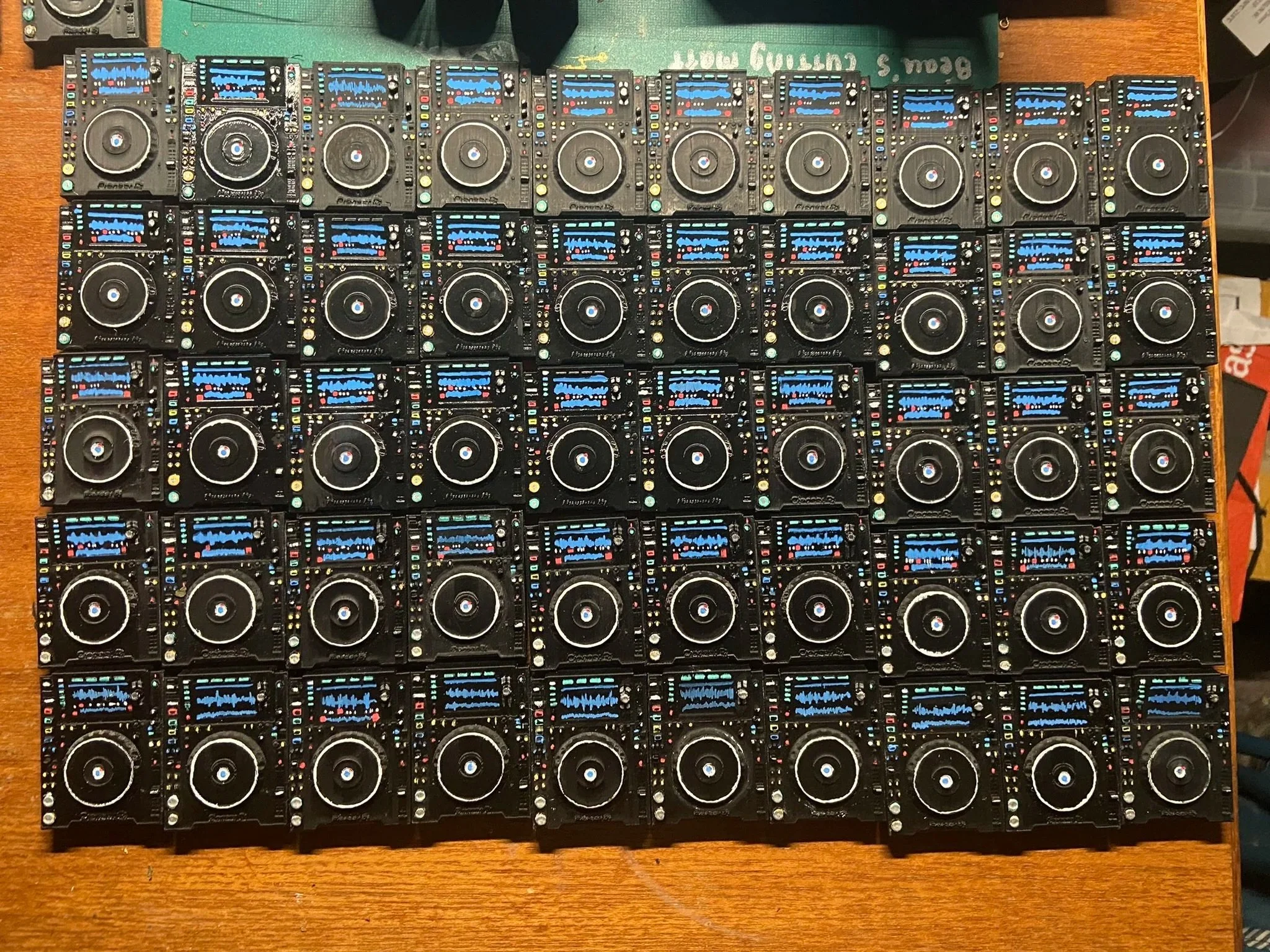 Modelled from a DJM Nexus 2000 and a DJM 900 NXS mixer these keychains are filament printed and painted with Posca pens. I make these to either sell at festivals or give to DJ’s and artists.