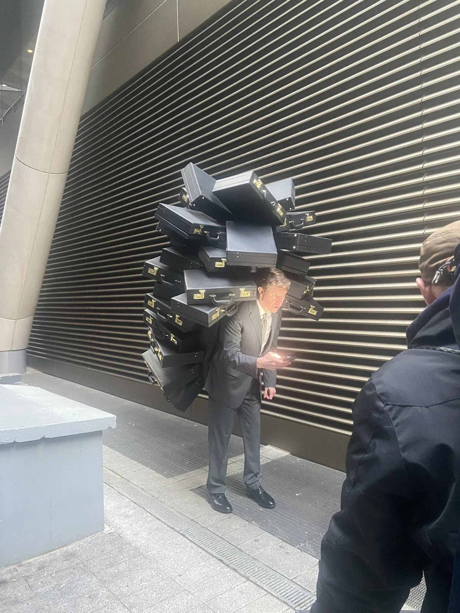 A 3D printed core structure housed 40 briefcases which had been cored out and lightweighted. The briefcases sat on lips and were screwed in from the back to be held in place with the upper most layer being removable to allow it to be put in place only right before the take and minimise the weight lifted by the actor.