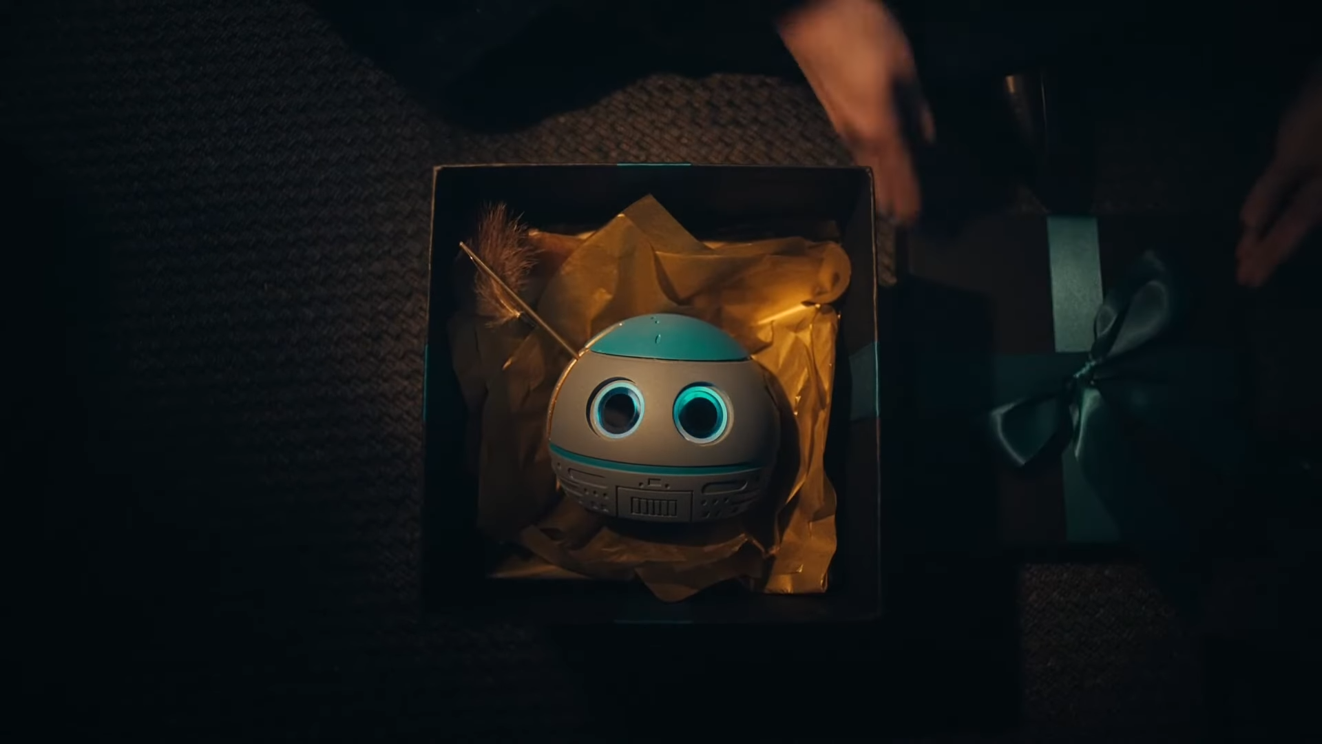 A remote control cat toy printed in resin with glowing eyes and a dangling feather. Once the print was sanded and painted, an RC unit was bracketed inside to allow it to move smoothly from side to side.