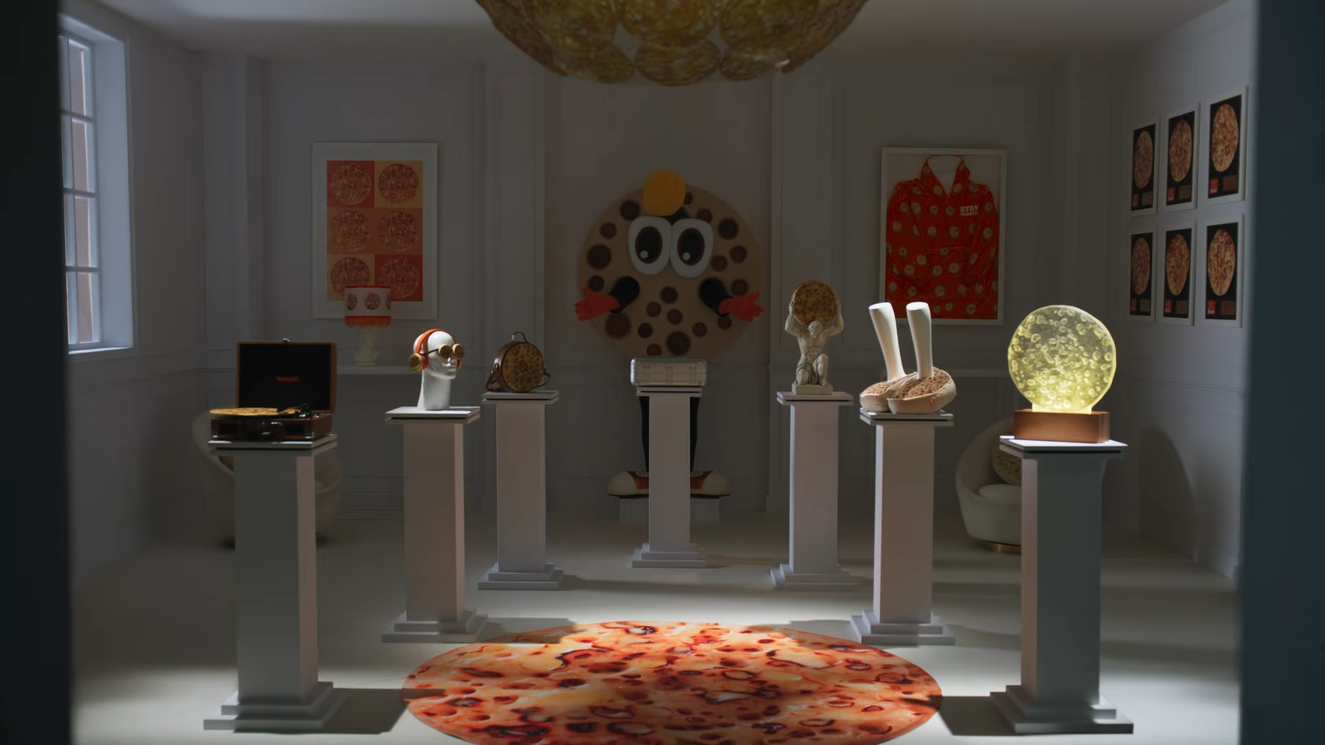 A selection of crumpet props were made most of them being 3d printed from scans that were taken and these indluded heaphones, sunglasses, a bag and a vinyl record. A clear acrylic crumpet was 3D CNC carved and underlit for a glowing effect. And a crumpet chandelier was made from an acrylic sphere clad in crumpet pannels that had been stained with french enamel varnish.